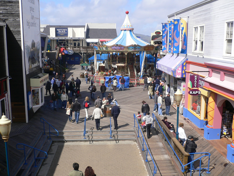Phantasialand-Feeling am Pier 39. Mittlerweile ist hier schon einiges los, ich möchte nicht wissen, wie das zur Hochsaison aussieht