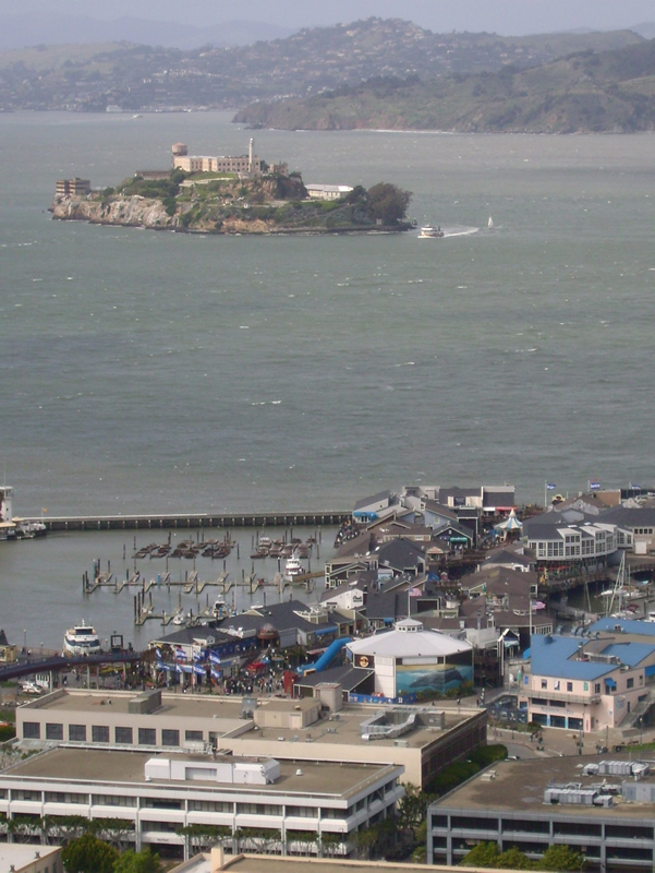 Unten der Pier 39, oben Alcatraz