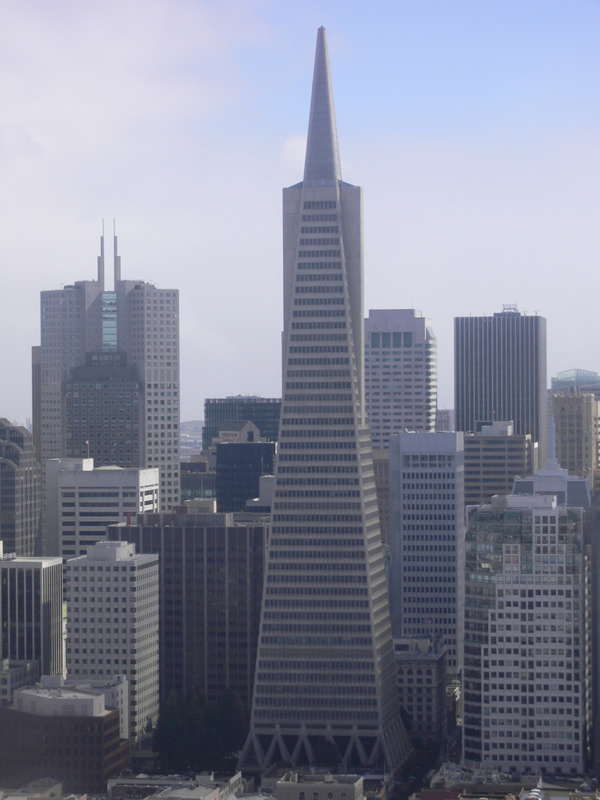Wie eine Rakete startbereit zum Abheben: Transamerica Pyramid. Die Aussparungen oben sind übrigens die Enden der Fahrstuhlschächte