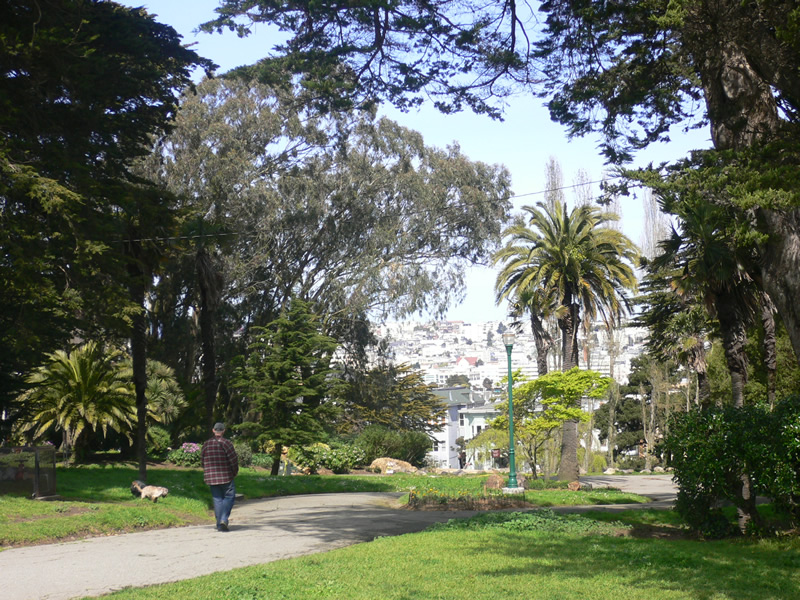 Alamo Square ist ein wirklich sehr schöner Park, mitten auf einem Hügel. Und natürlich mit Palmen!
