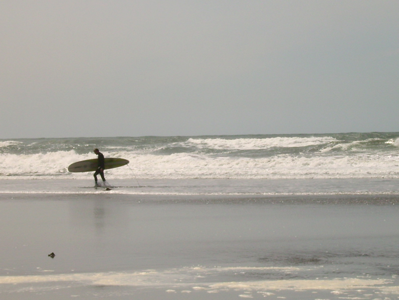 Ein einsamer Surfer traut sich in das kühle Nass