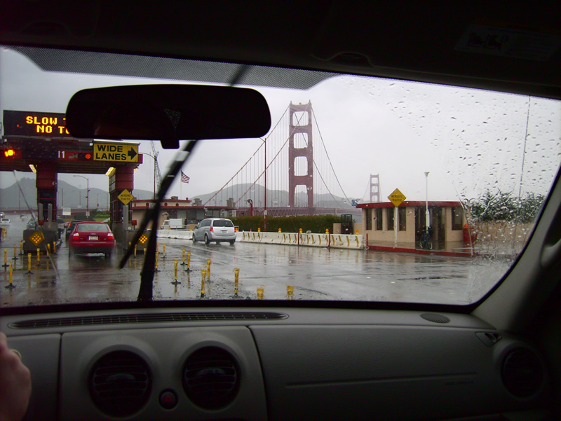 Von wegen "It never rains in California". - 5 $ Toll bezahlt man übrigens nur, wenn man nach Frisco rein fährt