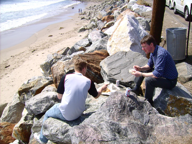 Picknick zwischen Strand und dem Highway 1. Es gibt lecker warmes Hähnchen und Nudel- bzw. Kartoffelsalat