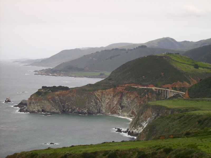 Hier sieht man schön die kurvige Küstenlinie, entlang derer der Highway führt. Rechts übrigens die Bixby Bridge