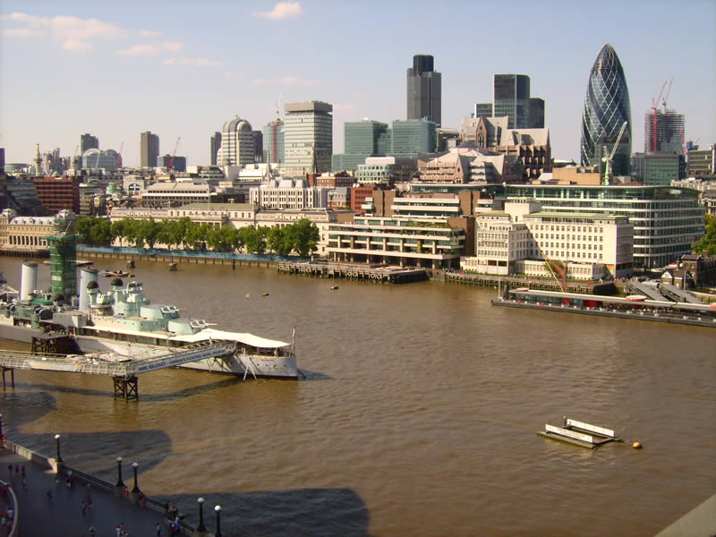 ...wobei die modernen Tower schon eine Ecke größer sind. Ein besonderer Hingucker ist das "Gurke" getaufte Gebäude der Swiss Re (rechts)