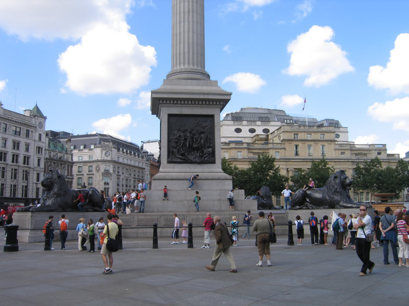 ...während vier Löwen ihn unten vor den Touristen beschützen