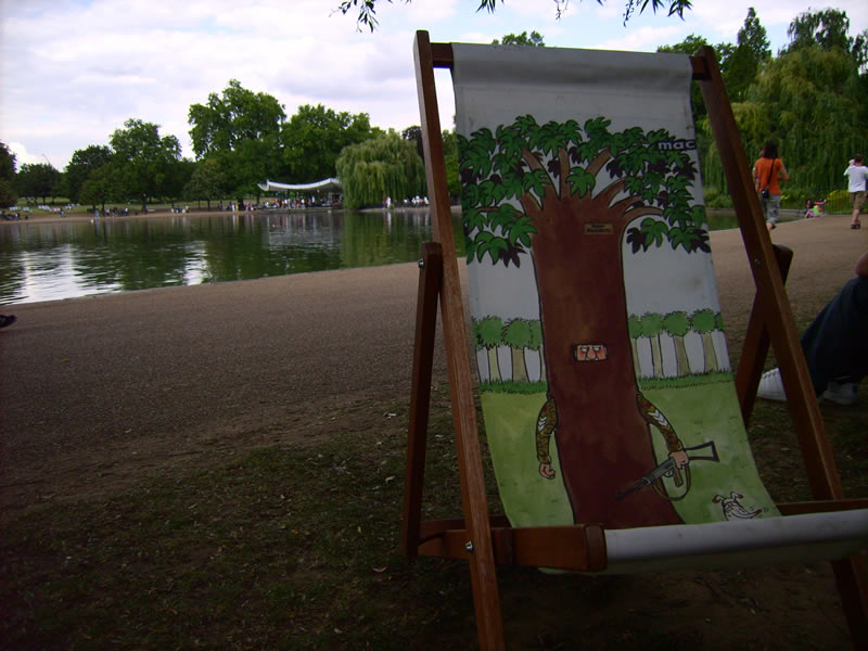 Im Hyde Park war gerade eine Ausstellung kunstvoller Strandsessel - teilweise mit aussagekräftigen Motiven