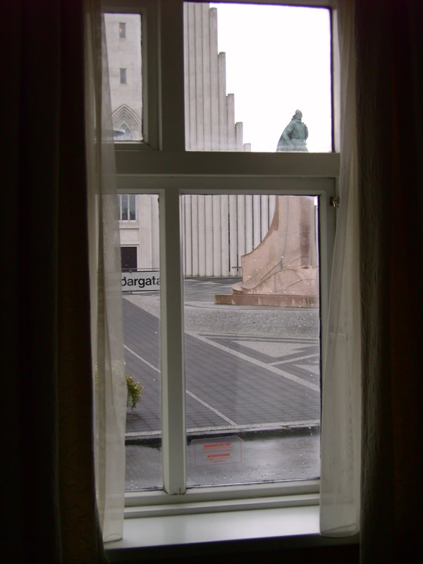 Aus unserem Hotelzimmerfenster schauen wir direkt auf die Hallgrimskirche
