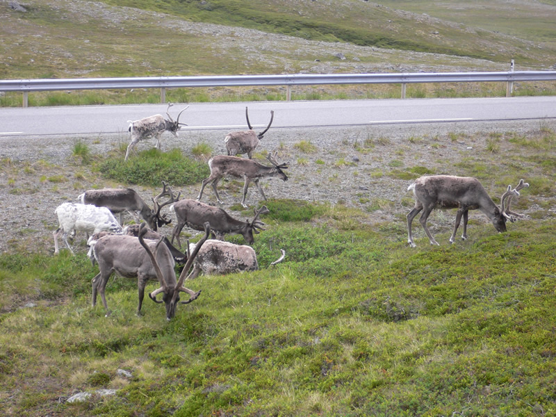 Unmittelbar vor unserem Feriendorf grast diese Herde Rentiere