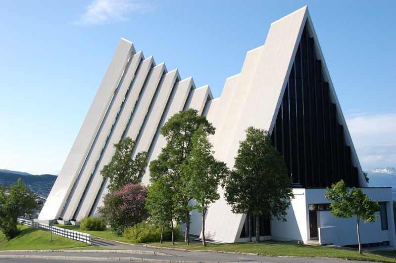 Die Eismeerkathedrale, erbaut 1965, symbolisiert das Nordlicht und die Polarnacht