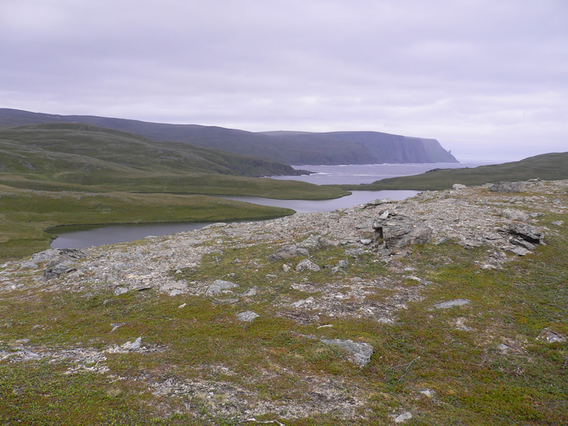 Von der kleinen Erhebung neben unserem Stützpunkt kann man die Ostseite des Nordkaps mit seinem berühmten Horn sehen