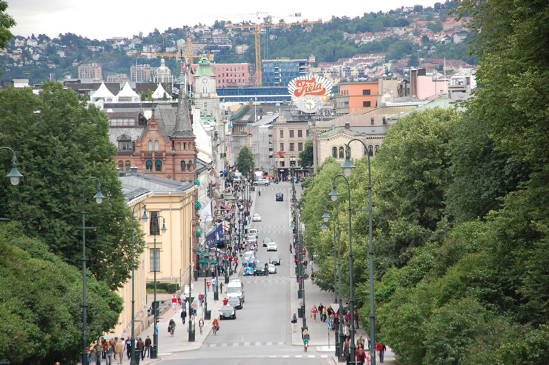Die Hauptstraße von Oslo sieht im Vergleich zu anderen Großstädten geradezu beschaulich aus