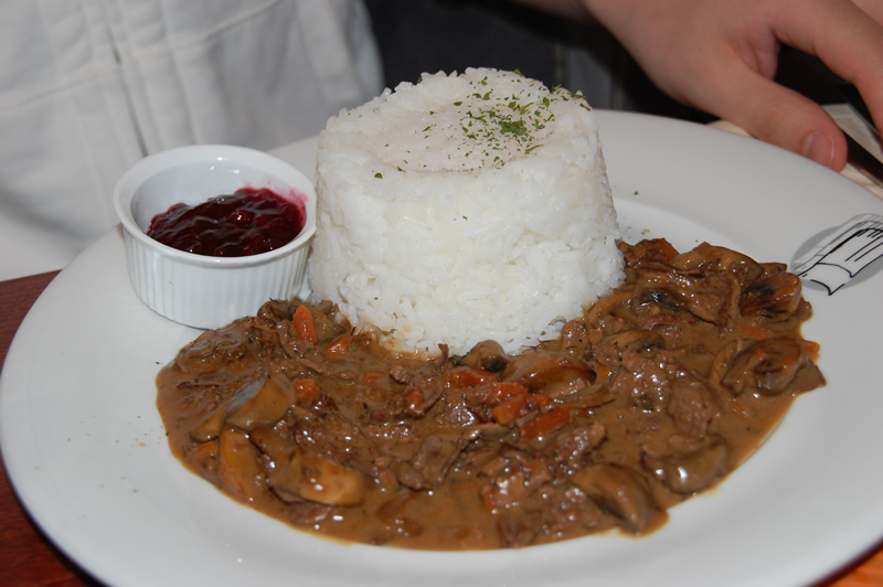 Hmmmm.... Rentierragout mit Reis und Preiselbeermarmelade. Ein Gedicht!