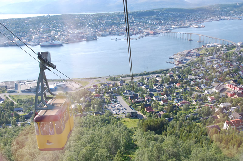 Ohne einen einzigen Stützpfeiler bringt uns die Gondelbahn auf den 420m hohen Storsteinen