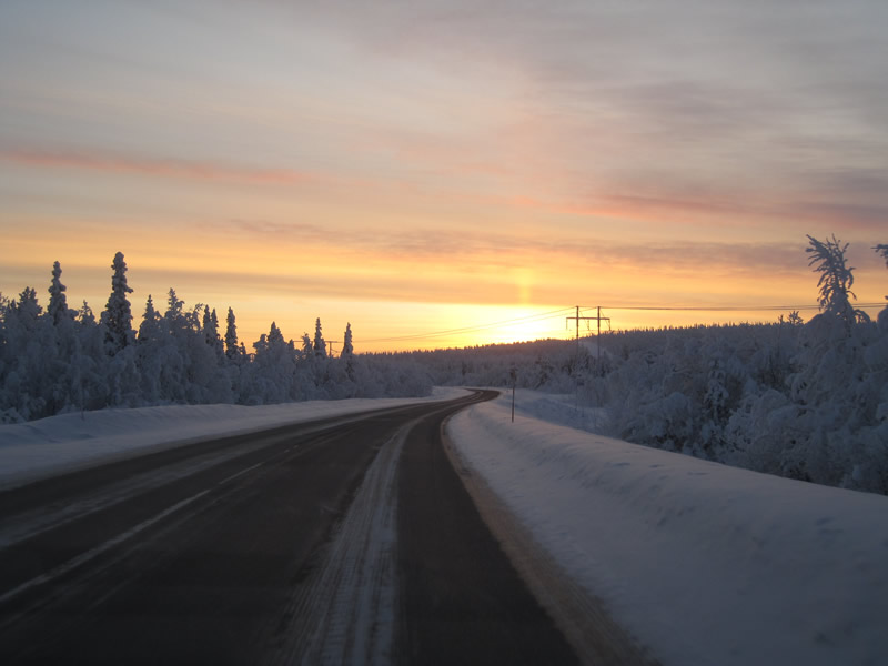 Weiter im Süden ist der Himmel wieder etwas heller, die Landschaft aber genauso winterlich