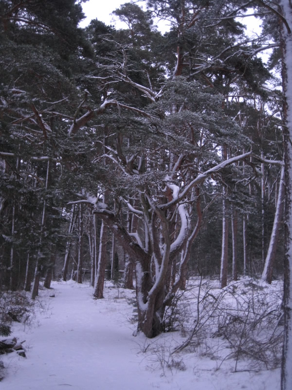 Knorrige, vom steifen Küstenwind verwehte Kiefern prägen diese Gegend