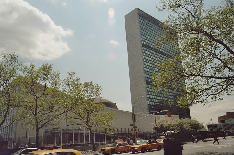 So kennt man es aus dem Fernsehen - die UNO mit der vorgelagerten Assembly Hall
