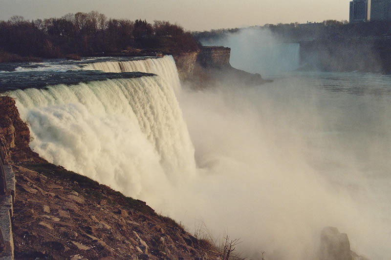Im Vordergrund die American Falls, dann Goat Island und im Hintergrund die Horseshoe Falls