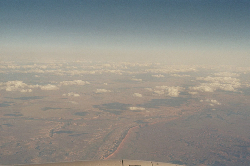 Während des Fluges sieht man etwa eine Stunde lang nur weites Land - kein Dorf, keine Stadt, Nix!