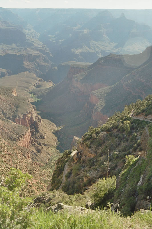 Da wollen wir runter: Rechts windet sich der Weg, links hinten sieht man den Weg zum Plateau Point