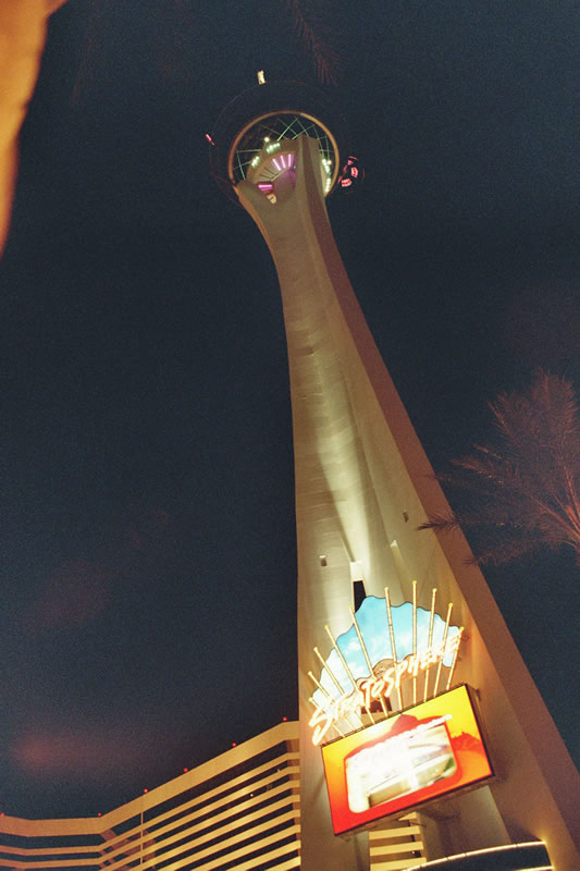 Der Stratosphere Tower - ein einziger Vernügungspark. Oben sieht man die diversen "Thrill Rides" (siehe Text).