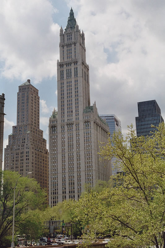 Das Woolworth Building, von 1913 bis 1930 mit 241m höchstes Gebäude der Welt