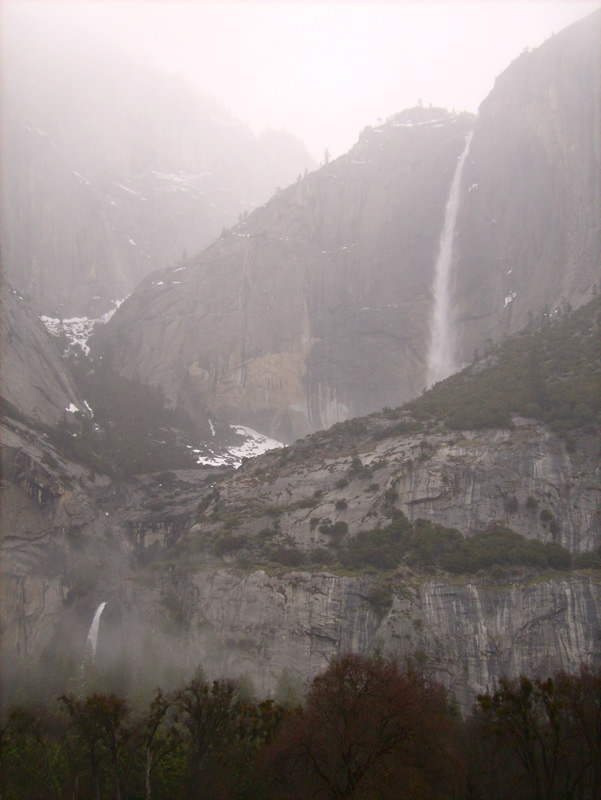 …bei den Yosemite Falls war der Nebel dann aber wieder da. Von ganz oben bis ganz unten sind's übrigens 700 Meter
