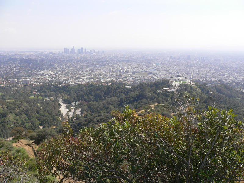 Was für eine Aussicht vom Gipfel des Mt. Hollywood: Links Downtown, rechts Griffith Observatorium, …