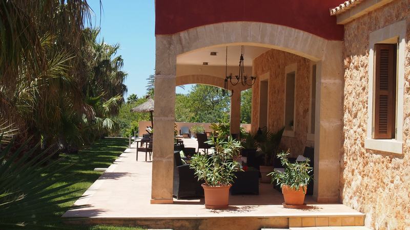 Ein Blick auf die seitliche Terrasse, wo wir meist das Frühastück eingenommen haben. Rechts unser Zimmerfenster.