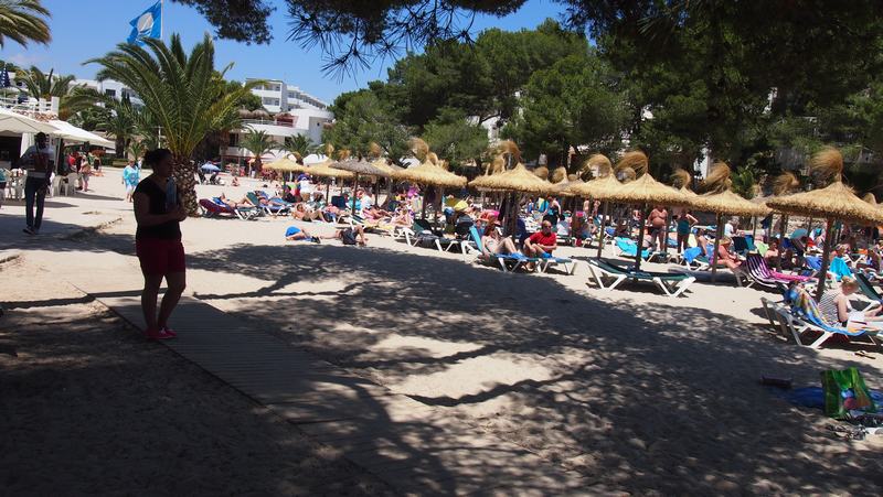 Hier herrscht das Prinzip Sardinenbüchse. Im Hintergrund sieht man die unendlich gröszlig;en Hotelbauten