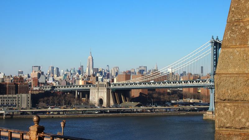 Blick Richtung Midtown mit dem Empire State Building, im Vordergrund die Manhattan Bridge