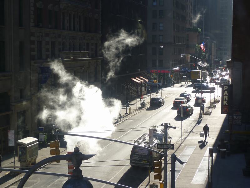 Wie im Film qualmt es aus der Straße, aufgenommen von unserem Hotelfenster aus