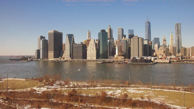 Tolle Sicht auf die Downtown - unten ist der neu angelegte Brooklyn Bridge Park