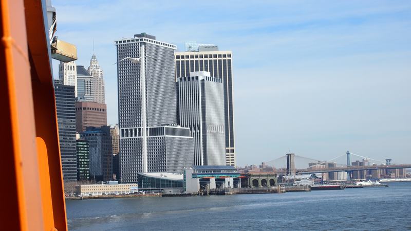 In der unteren Bildmitte sieht man die Anlegestelle der Fähre, ganz an der Südspitze Manhattans